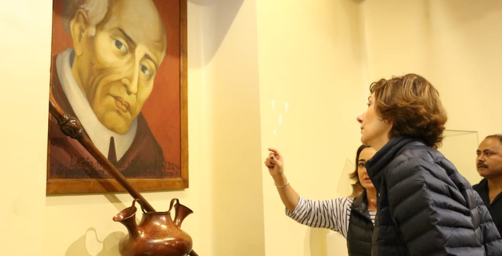 La funcionaria española en compañía de la secretaria de Turismo estatal, Claudia Chávez, recorre el Pueblo Mágico de Santa Clara del Cobre